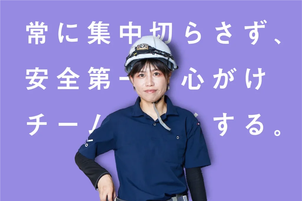 現場の職長として責任を持ちながら、時には作業員としても現場に入っています。学ぶことはまだまだ多いですが、現場ごとに毎回できることが増えていくのがやりがいです。休日はロックバンドのライブに行ってリフレッシュ!これからも現場で学び続け技術を高めていきたいです。