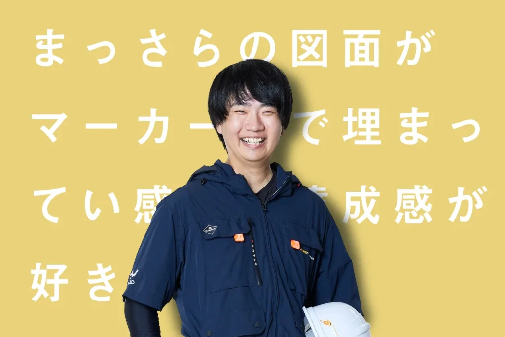 送電業務や配線チェックを担当し、まっさらな図面がマーカーで一つずつ埋まっていく過程に大きな達成感を感じています。作業は必ず二人以上で行うため、相手にわかりやすく簡潔に伝えることを意識し、コミュニケーションを大切にしています。業界未経験からのスタートでしたが、専門用語や建物の構造も理解できるようになり、成長を実感する日々。今後は知識と経験を積み重ね、一人でも現場を任せてもらえる技術者を目指しています。