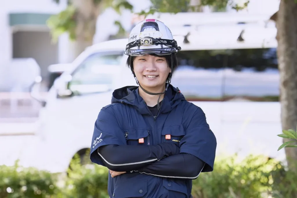 「電気は目に見えない危険があるので、安全第一は絶対です。ただ黙々とやるんじゃなくて、仲間と声を掛け合いながらやるのが好きですね。周りを見てサポートできるように意識しています。」